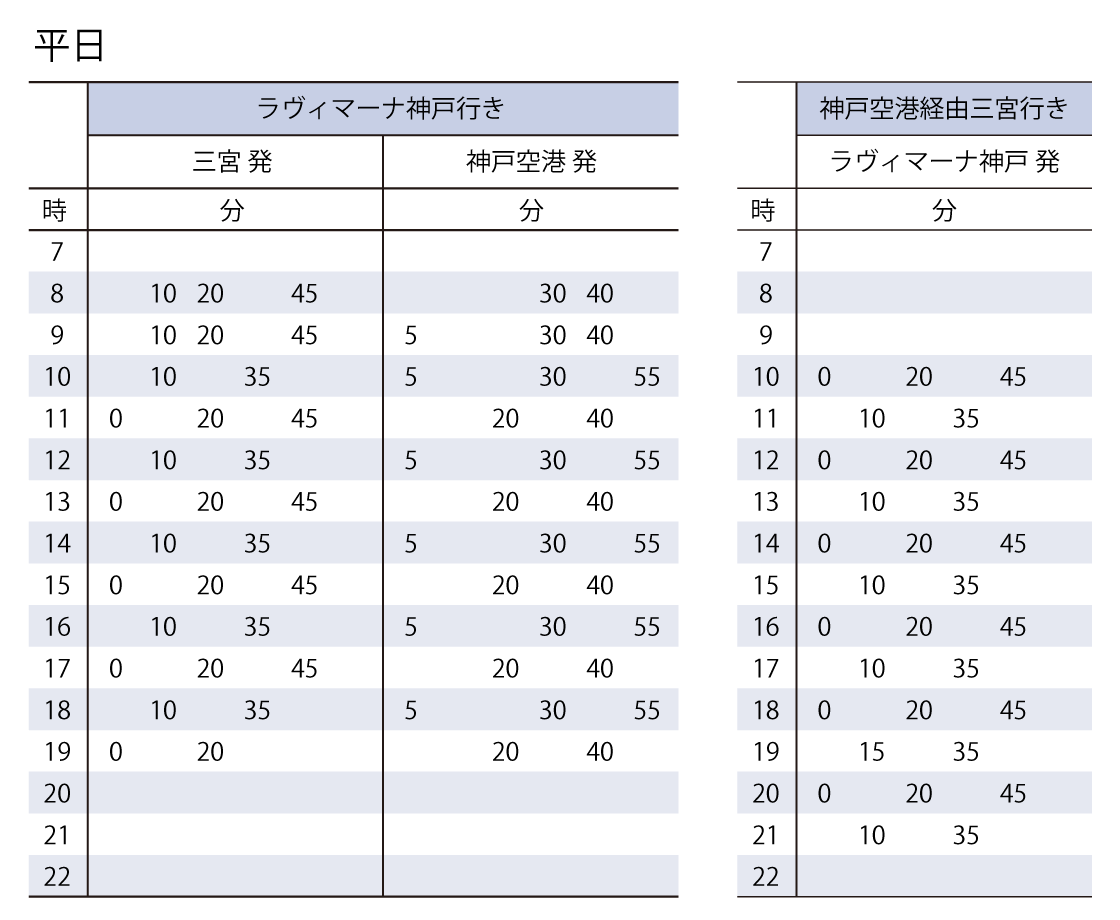 [三宮~神戸空港駅~ラヴィマーナ神戸 約30分]